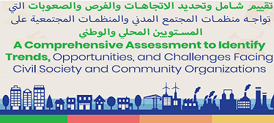 تقييم شامل وتحديد الاتجاهات والفرص والصعوبات التي تواجه منظمات المجتمع المدني والمنظمات المجتمعية على المستويين المحلي والوطني