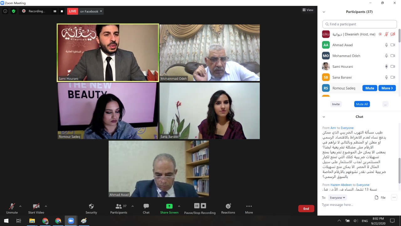 الفريق المؤيد للطرح: السيد أحمد عوض، مدير مركز الفينيق للدراسات الاقتصادية والمعلومات والسيدة سناء البنوي، مختصة إدارة المعرفة في اللجنة الوطنية الأردنية لشؤون المرأة.