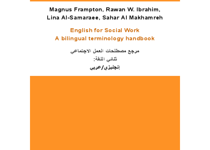 هذا القاموس من الإنجليزية إلى العربية هو محاولة شاملة لترجمة جميع المصطلحات المستخدمة، في كثير من الأحيان، في العمل الاجتماعي من الإنجليزية إلى اللغة العربية. يسعى هذا الكتاب الإلكتروني إلى معالجة التأثير المتزايد لمهنة العمل الاجتماعي في العديد من البلدان والمناطق. ومن الواضح أن الانضباط في منتصف فترة كبيرة من التدويل وبالنسبة لتلك البلدان في الجنوب العالمي، حيث العمل الاجتماعي لا يزال مهنة الوليدة، يوفر هذا التدويل فرصًا مهنية. يهدف هذا الكتاب الإلكتروني إلى أن يكون له دور في إضفاء الطابع المهني على العمل الاجتماعي في البلدان العربية من خلال توفير الأفراد الناطقين بالعربية إمكانية الوصول إلى المصطلحات الإنجليزية والممارسات الدولية في مجال العمل الاجتماعي. إن العمل الاجتماعي الذي تم وصفه ومناقشته في هذا الكتاب يتماشى بشدة مع الممارسة البريطانية، ولكن هناك إيماءة لاستخدام لغة العمل الاجتماعي الدولي في الفصول التالية. اللغة الإنجليزية المختارة بريطانية إلى حد كبير، وتستكمل هنا بالمصطلحات الدولية للفصول الأحدث. ينقسم الكتاب إلى ستة أجزاء: مجالات الممارسة، والطرق، ومفاهيم النظريات والسياق، والعمل الاجتماعي الدولي، واللغة الإنجليزية في مكان العمل للرعاية الاجتماعية، والمدرسة والجامعة. لا يحتوي كل جزء فقط على الترجمات ذات الصلة للمصطلحات والعبارات الرئيسية ولكن أيضًا النصوص التمهيدية التي تستخدم فيها هذه المصطلحات. توفر هذه النصوص سياقًا مكتوبًا لاستخدام هذه المصطلحات. تم تقديم هذا العمل كمحاولة مبدئية ومبدئية لالتقاط استخدام اللغة في منطقتين ، واحدة من هذه المجموعة هي مجموعة هائلة ومتباينة من البلدان. على هذا النحو من المسلم به أنه قد يكون هناك إغفال أو أخطاء صغيرة ، كما هو الحال مع أي طبعة أولى.