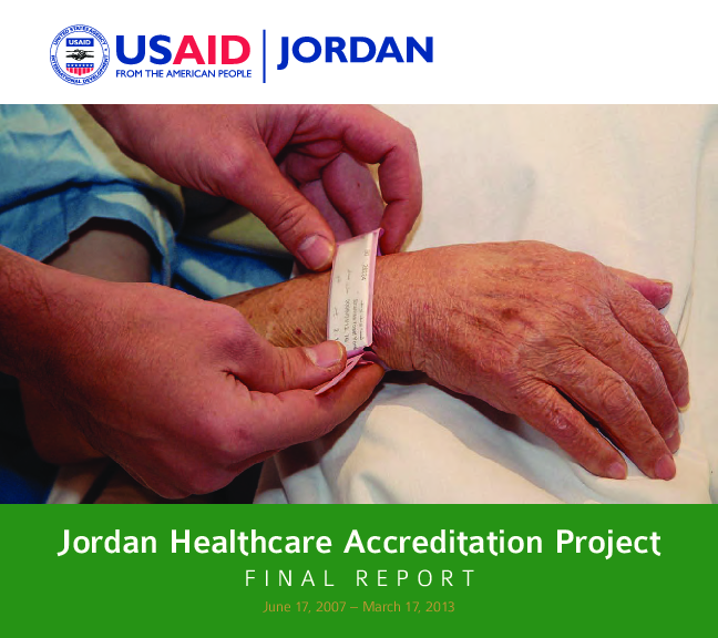 The report aims to provide an executive summary and major results and accomplishments,lessons learned and challenges and opportunities of the Jordan Healthcare Accreditation Project (JHAP). The overall goal of the JHAP was to improve the health status of all Jordanians and quality and safety of healthcare services through accreditation. The project's methodology was assisting the Government of Jordan to adopt a regulatory framework for the health sector,through the establishment of national and internationally recognized healthcare standards and accreditation. The key results of the project include an organizationally and financially sustainable accrediting agency in Jordan,the Health Care Accreditation Council (HCAC),an HCAC board with the appropriate skills to govern the agency and support from the Ministry of Health,the Royal Medical Services,the university hospitals,and the Royal Court for accreditation. The report concludes with recommendations for the HCAC in areas such as financial sustainability,credibility of the organization,keeping the momentum and new business development and innovation. Some opportunities that the report suggests include expanding in the Middle East and North Africa region,partnering with well-known quality organizations,offering courses online and benchmarking subscriptions.